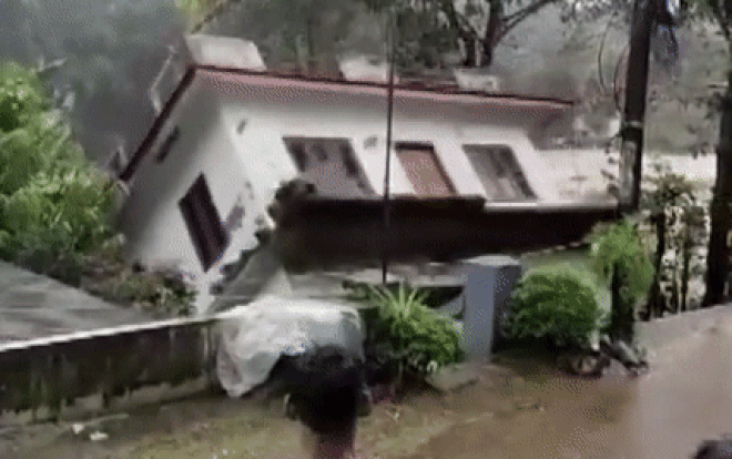 Một căn nhà hai tầng đổ sập trong nước lũ và bị cuốn trôi ở quận Kottayam. Nhiều hình ảnh khác cho thấy mưa lũ và sạt lở đây gây ảnh hưởng nghiêm trọng tới cuộc sống người dân. Do lở đất và lũ quét nghiêm trọng ở Ấn Độ đã làm ít nhất 25 người thiệt mạng.