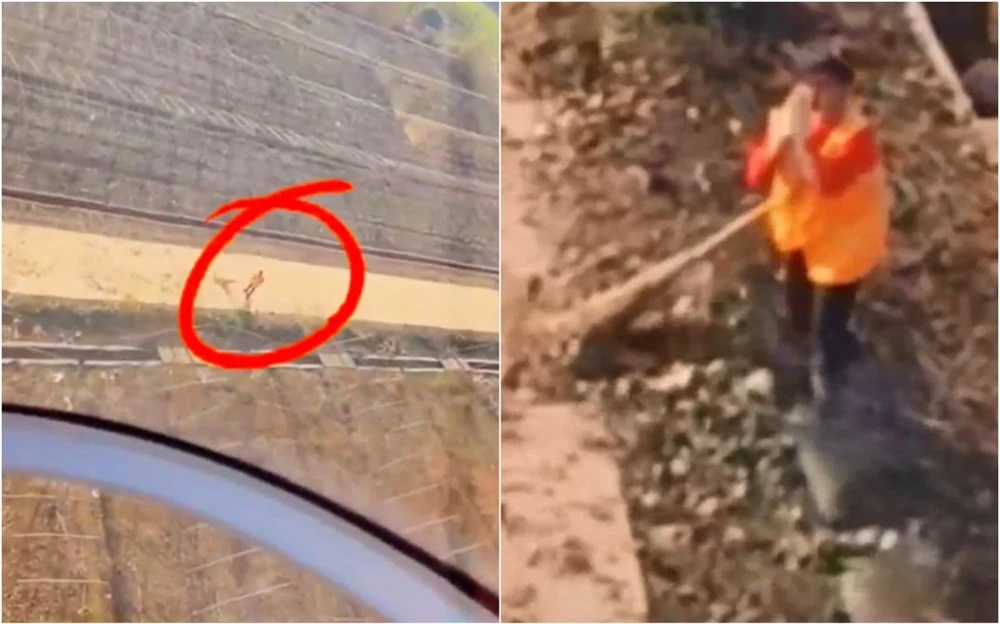 Một đoạn video quay cảnh một chiếc máy bay trực thăng đột ngột sà xuống đất đang lan truyền cho thấy, phi công đang bay trên cao thì nhìn thấy bên dưới có một người lao công đang quét lá trên đường, khiến anh chàng phi công liền điều chỉnh máy bay thấp xuống rồi làm việc này.