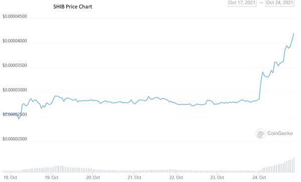 Theo số liệu từ CoinGecko.com, đồng tiền số khởi đầu là 1 trò đùa này đã tăng giá 50% trong 24 giờ qua. Tổng cộng trong 1 năm qua SHIB đã tăng giá tới hơn 40 triệu phần trăm. Trên Change.org, kiến nghị kêu gọi Robinhood bổ sung SHIB vào danh sách các đồng tiền số có thể được giao dịch trên nền tảng giao dịch trực tuyến này đã thu hút được gần 300.000 chữ ký.