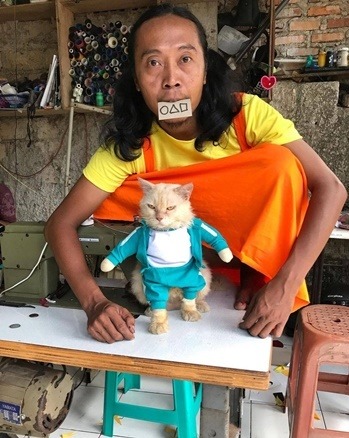 Bức ảnh gần đây anh đăng về một bộ trang phục mèo lấy cảm hứng từ bộ phim Squid Game (Trò chơi con mực) đã gây được chú ý mạnh mẽ.