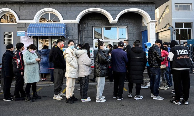 Người dân xếp hàng chờ xét nghiệm nCoV bên ngoài một bệnh viện ở Bắc Kinh, Trung Quốc, hôm nay. Ảnh: AFP.
