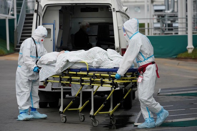 Nhân viên y tế chuyển bệnh nhân tới bệnh viện ở Nga (Ảnh: Reuters).