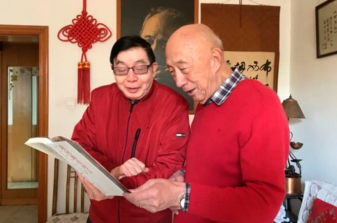 Vương Sùng Thu (trái) và Lưu Lễ (77 tuổi) ôn kỷ niệm thời quay "Tây du ký". Ảnh: Wang Chongqiu