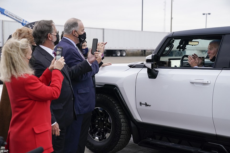 Ông Biden cầm lái chiếc Hummer phiên bản chạy điện.