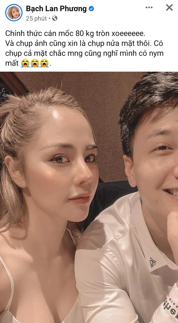 Trước đó, Bạch Lan Phương cũng đăng ảnh của anh nhưng không lấy full mà chỉ zoom cận nửa mặt. Lý giải điều này, Bạch Lan Phương chia sẻ: "Chính thức cán mốc 80 kg tròn xoe. Và chụp ảnh cũng xin là chụp nửa mặt thôi". Có lẽ vì tăng cân mà khuôn mặt của nam diễn viên trở nên mũm mĩm. Bạch Lan Phương "cà khịa" Huỳnh Anh: "Có chụp cả mặt chắc mọi người cũng nghĩ mình có người yêu mới mất".
