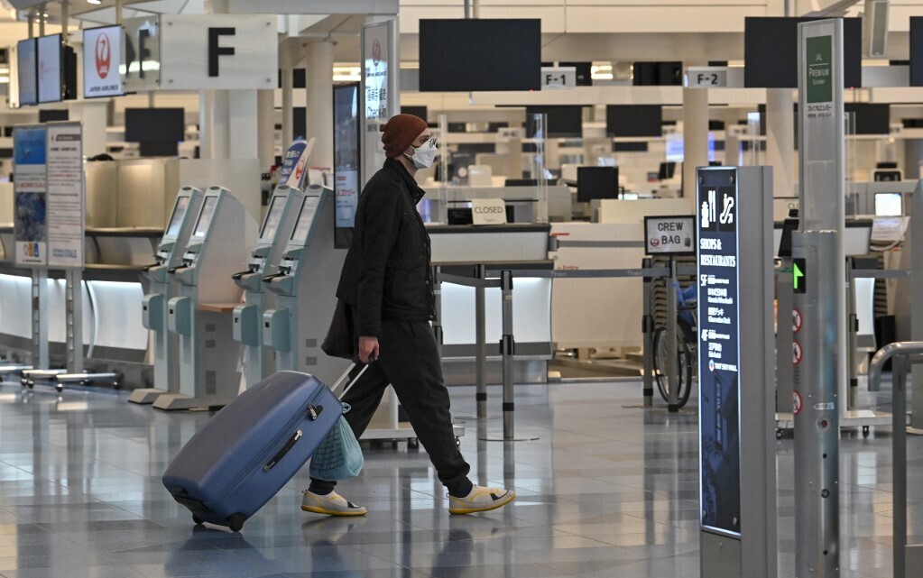 Nam hành khách đi ngang quầy làm thủ tục tại ga quốc tế, sân bay Haneda, Tokyo hôm 1/12. Ảnh: AFP.