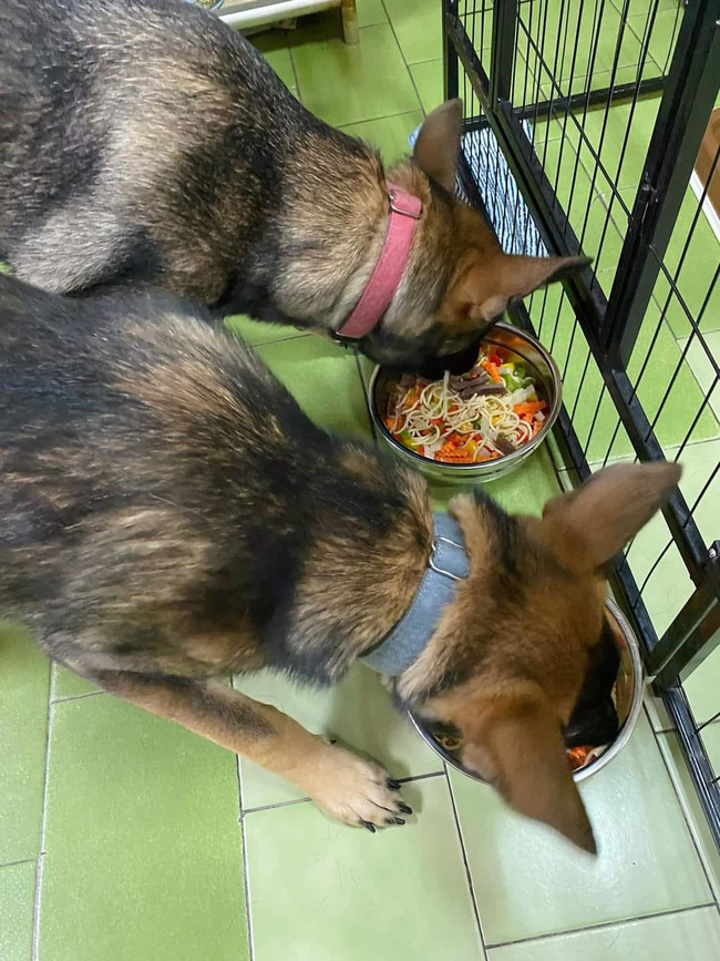 Thậm chí, trong bức ảnh khác, 2 chú chó này còn được ăn cơm rang trứng chiên khá ngon mắt, được chuẩn bị đầy đủ và chỉn chu.