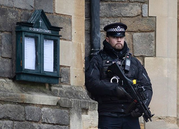 Lực lượng an ninh canh gác ở lâu đài Windsor. Ảnh: Kelvin Bruce