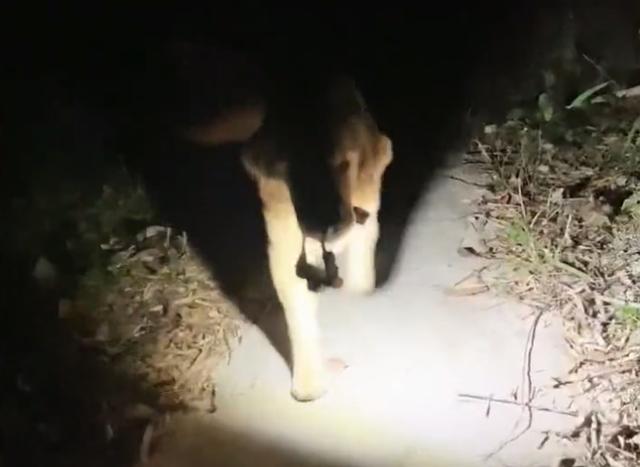 Hoá ra đó chú chó cưng, lo cho chủ nên mang theo cả đèn pin đi đón