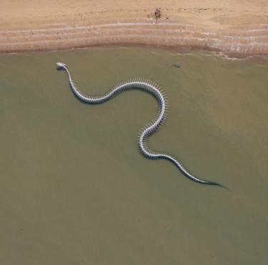 Như mới đây, người dùng Facebook liên tục truyền tay nhau loạt ảnh về một con rắn khổng lồ thoắt ẩn, thoắt hiện trên mặt biển. Theo tiết lộ từ chủ nhân bài đăng, đây là tác phẩm điêu khắc mang tên Serpent d'océan toạ lạc ngoài khơi cửa sông Loire, ngoại ô Nantes, nước Pháp.