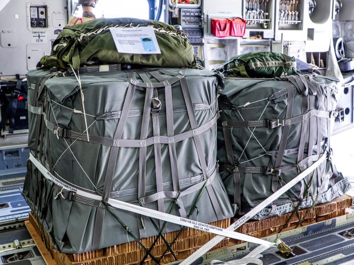 Tất cả hàng hóa được đưa lên qua cửa chở hàng phía sau của C-17, được trang bị một đường dốc để dễ dàng chất và dỡ hàng.