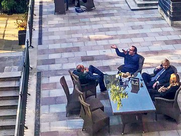 Bức ảnh được cho là đă ghi lại buổi tiệc tại vườn hoa nhà Thủ tướng Boris Johnson trong thời gian giăn cách. Ảnh: Guardian.