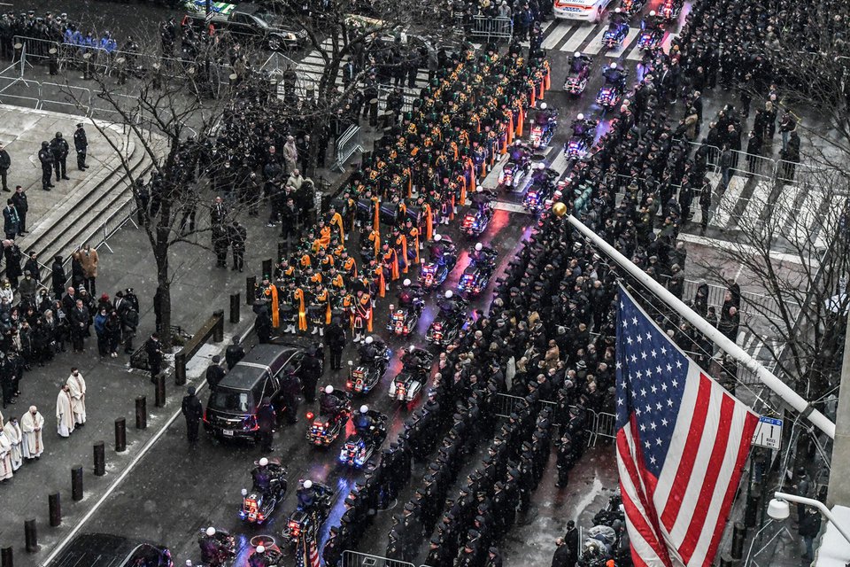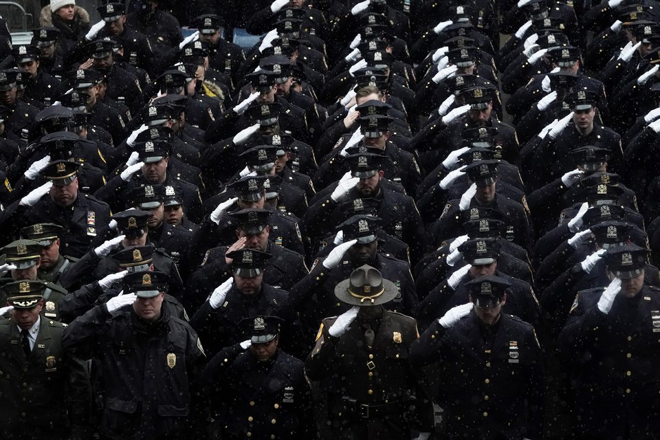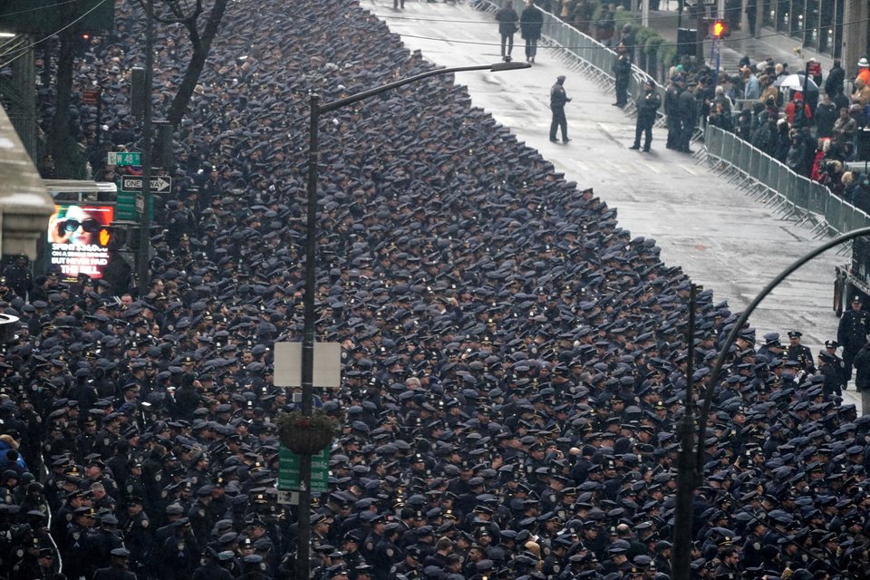 Hàng nghìn cảnh sát New York tiễn đưa đồng nghiệp bị bắn chết. Những hình ảnh sau diễn tả hàng nghìn cảnh sát xuống đường ở Đại lộ số 5, thành phố New York để tiễn biệt sĩ quan Jason Rivera - người bị bắn chết hồi tuần trước trong lúc xử lý một vụ bạo lực gia đình.