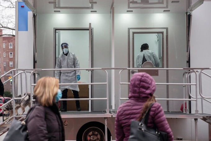 Người dân xếp hàng chờ xét nghiệm Covid-19 tại quận Queens, thành phố New York, Mỹ, tháng 12/2021. Ảnh: NY Times