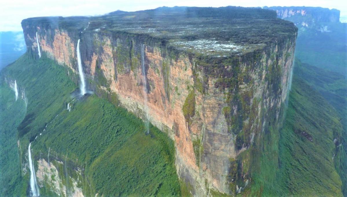 Núi Roraima, Venezuela: Núi Roraima là một ngọn núi với những vách đá cao 400m ở cả bốn phía, là điểm phân biệt ba quốc gia Venezuela, Brazil và Guyana. Nó nằm ở góc phía nam của Venezuela và là một phần của Vườn quốc gia Canaima. Các dăy núi trong đó có Roraima là một trong những thành tạo địa chất lâu đời nhất được biết đến - hai tỷ năm. Đây cũng là nơi có một số thác nước cao nhất thế giới, cũng là nguồn cảm hứng đằng sau cái tên "Thác Thiên đường" trong bộ phim Up của Pixar.