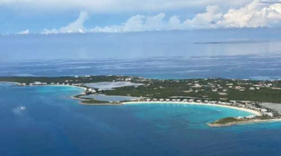 Từ trên cao, hành khách nhìn thấy mũi phía tây nam Anguilla, với đường cong cát dài vịnh Maundays.