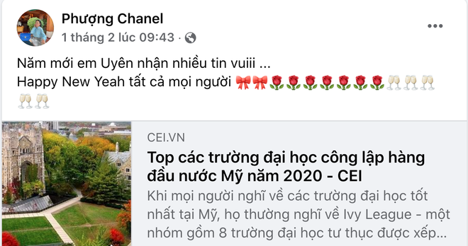 Cách đây 3 tuần, nữ đại gia đã chia sẻ một bài viết có tựa đề về top các trường đại học công lập hàng đầu nước Mỹ năm 2020 và không quên thông báo con gái lớn đã nhận được nhiều tin vui vào đầu năm. Cụ thể, trong một bình luận, Phượng Chanel đã thông báo Susu nộp hồ sơ 10 trường ĐH top đầu của Mỹ, hiện đã được 5 trường nhận và cả gia đình đang đợi kết quả từ các trường khác nữa để quyết định học bổng.