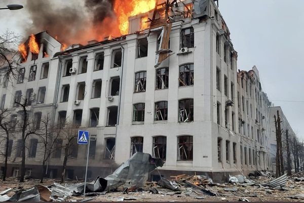 Giới chức Ukraine cho biết, lúc 8h10 sáng nay, một tên lửa của Nga đã bắn trúng tòa nhà cảnh sát và một trường đại học ở Kharkiv, thành phố lớn thứ hai tại nước này.