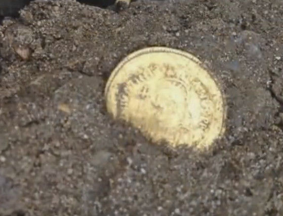 Hóa ra, thứ vô tình cứa vào chân anh ban nãy lại là một đồng tiền vàng nhìn có vẻ rất cổ.
