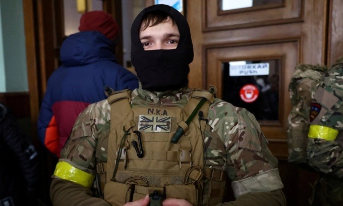 Một chiến binh nước ngoài đến từ Anh tham gia hỗ trợ các lực lượng Ukraine. Ảnh: Reuters.