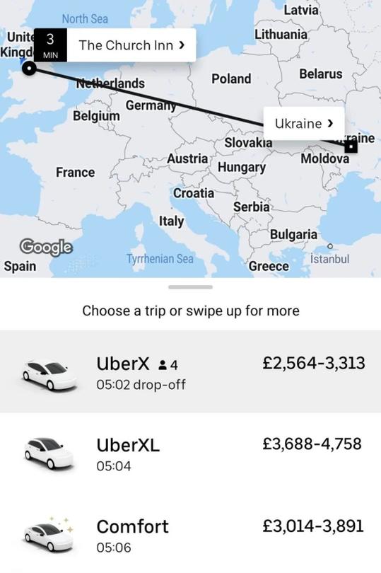 Sau khi đặt cuốc Uber đó, tôi không thể gọi taxi về nhà suốt 1 tiếng rưỡi. Họ cho phép tôi đặt chuyến tới Ukraine nhưng lại không cho tôi đặt taxi về nhà chỉ 10 phút. Lúc đó là 10h30 tối và tôi phải gọi vài công ty taxi khác mới book được 1 chiếc. Tôi lên xe lúc 12h đêm''.