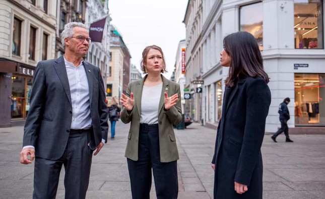 Lănh đạo Đảng Xanh Une Bastholm (giữa) cùng các nghị sĩ đảng Xanh trong quốc hội Rasmus Hansson (trái) và Lan Marie Nguyen Berg (phải) - cho rằng Na Uy có thể bị coi là những kẻ trục lợi chiến tranh. Ảnh: Javad Parsa / VG