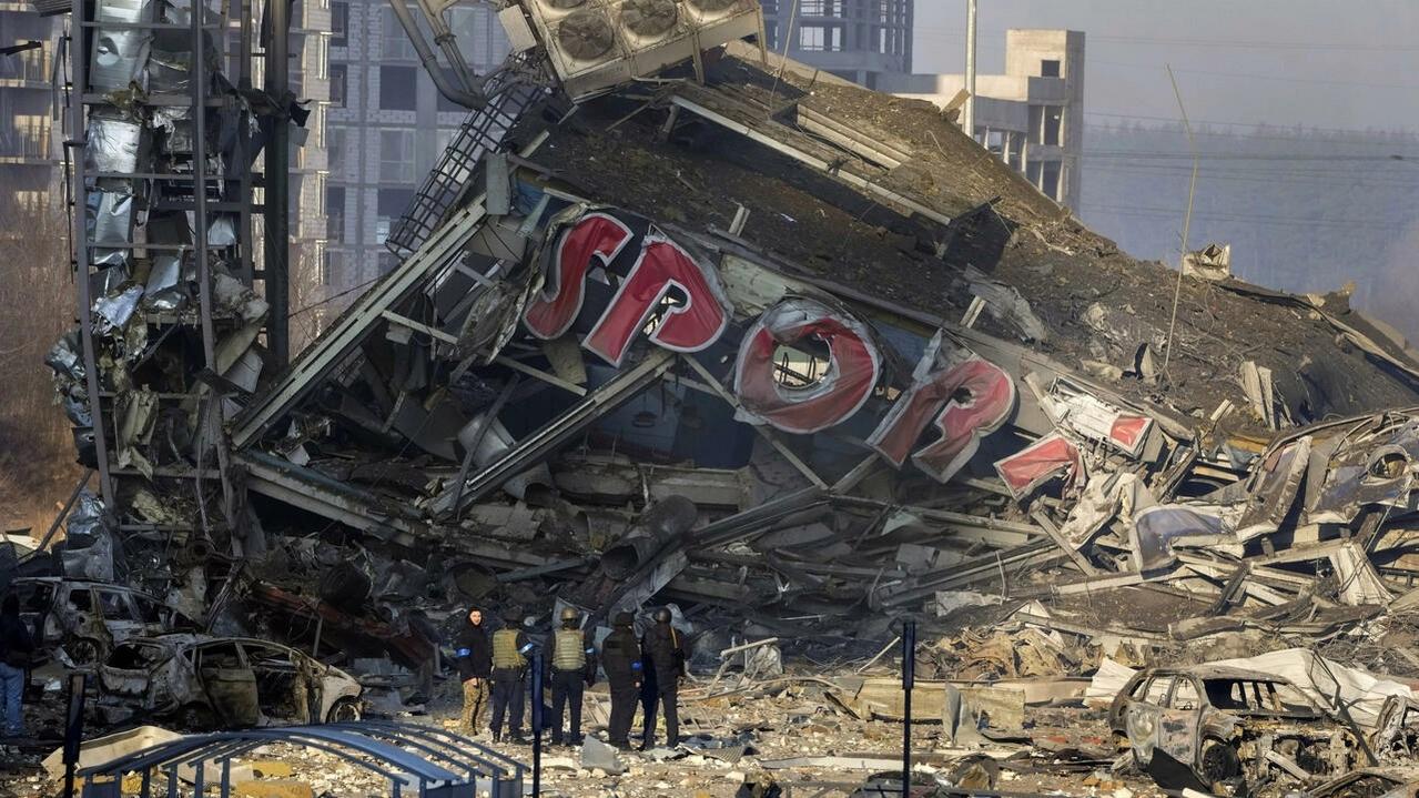 Một thương xá ở Kiev, Ukraina, bị quân Nga pháo kích ngày 21/03/2022. AP - Efrem Lukatsky
