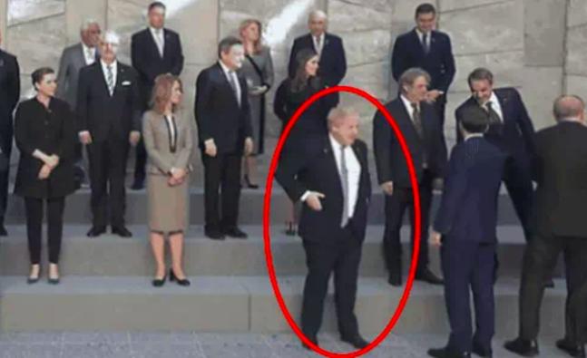 Hình ảnh video thấy, trong khi các nhà lãnh đạo của các nước thành viên NATO đang đứng trên bậc thềm để đợi chụp ảnh tập thể và vui vẻ hỏi thăm nhau, thì Thủ tướng Anh Boris Johnson đứng lúng túng, hai tay đút túi, ngó trái nhìn phải. Phía sau ông, Tổng thống Pháp Emmanuel Macron bắt tay và trò chuyện với các nhà lãnh đạo châu Âu.