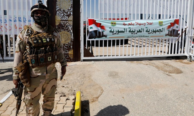 Binh sĩ Iraq đứng gác tại cửa khẩu biên giới với Syria ở al Qaim tháng 12/2019. Ảnh: Reuters.