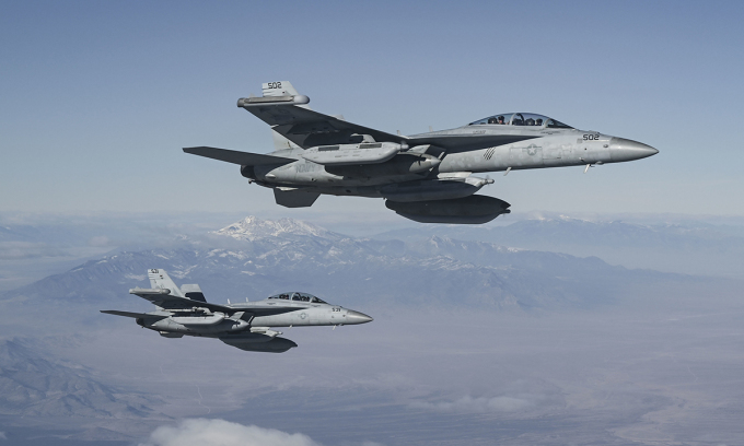Hai tiêm kích EA-18G Mỹ huấn luyện gần căn cứ Neliis, bang Nevada, ngày 3/2. Ảnh: USAF.