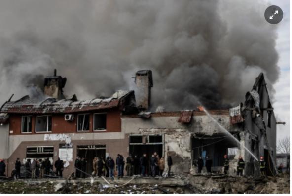 Hiện trường một vụ tấn công tên lửa tại Lviv, Ukraine hôm 18/4. Ảnh: New York Times.