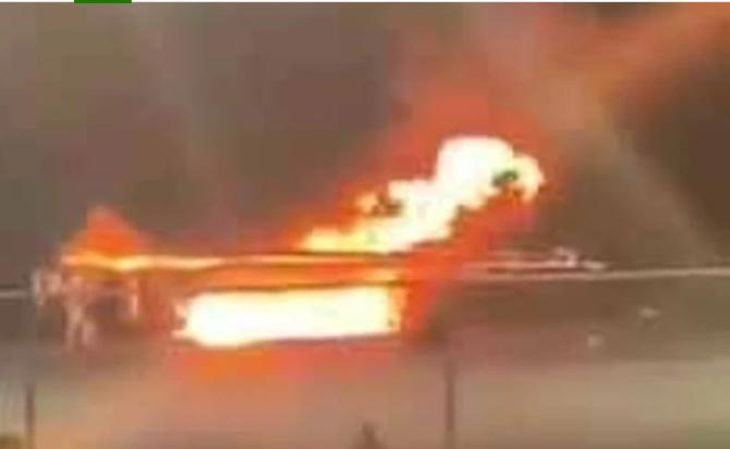 Video được đăng tải trên mạng xã hội được cho ghi lại cảnh máy bay bốc cháy cho thấy chiếc B1-B chìm trong lửa lớn.