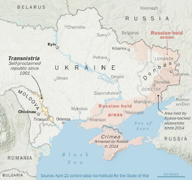Transnistria là vùng lănh thổ ly khai ở Moldova, quốc gia giáp biên giới Ukraine.