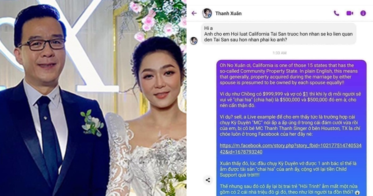Sau khi đại gia Thắng Ngô bị chỉ trích “giàu đổi bạn, sang đổi vợ”. Ca sĩ Hà Thanh Xuân cũng không tránh khỏi sự công kích từ Netizen. Trên một số diễn đàn showbiz, không ít bình luận cho rằng chính sự xuất hiện của cô là nguyên nhân khiến vợ chồng đại gia Thắng Ngô tan vỡ. Mới đây, dân hóng hớt lại được dịp nhốn nháo khi chia sẻ đoạn tin nhắn được cho là của Hà Thanh Xuân và luật sư. Trong đoạn tin nhắn, giọng ca hải ngoại đặt câu hỏi liên quan đến vấn đề tài sản vợ chồng khi bắt đầu cuộc sống hôn nhân.
