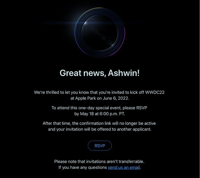 Các đơn đăng ký tham gia sự kiện được mở từ ngày 9/5 – 11/5. Hiện Apple đang thông báo cho các nhà phát triển được mời thông qua “quá trình lựa chọn ngẫu nhiên”.