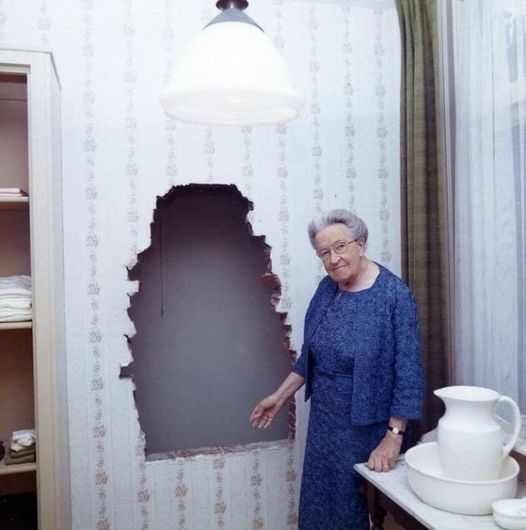 Hình tư liệu chụp bà cạnh căn phòng bí mật của gia đình. Mộ của bà hiện nay có dòng chữ Jesus là Người chiến thắng.
