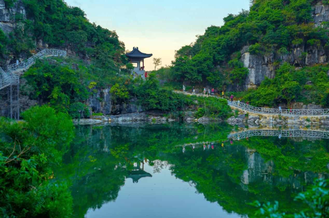 Cảnh sắc nơi đây xinh đẹp diễm lệ, những ngọn núi đá vôi cao hùng vĩ ôm trọn hồ nước xanh ngắt màu ngọc bích chính giữa. Chính quyền nơi đây đã xây dựng con đường lên núi để khách tham quan có thể thưởng thức cảnh đẹp tuyệt diệu của "hồ nước trên trời" đầy ngoạn mục này. Quan trọng nhất chính là du khách không cần phải trả bất cứ phí nào!