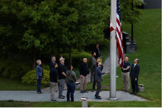 Quốc kỳ Mỹ hôm 18/5 đã được kéo lên tại Đại sứ quán Mỹ ở Kyiv, Ukraine lần đầu tiên kể từ khi các nhà ngoại giao trở lại. Ảnh: Reuters.