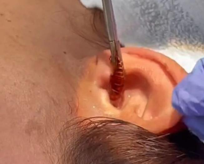Cô gái không nói nên lời khi nhìn thấy "kẻ đột nhập" vào tai mình.