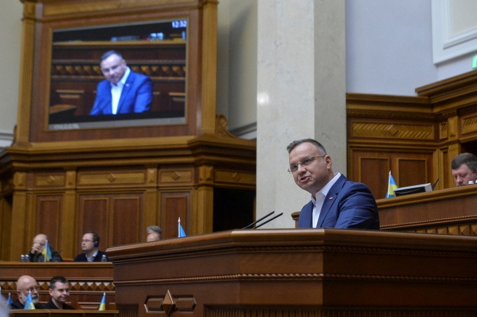 Tổng thống Ba Lan Andrzej Duda phát biểu trước quốc hội Ukraine, cho biết ông sẽ tiếp tục thúc đẩy các nỗ lực nhằm đưa nước này gia nhập Liên minh châu Âu (EU).