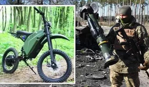Xe máy điện có thể chở được gần 70km, giúp binh lính Ukraine vận chuyển vũ khí chống tăng 66m. Ảnh: Eleek