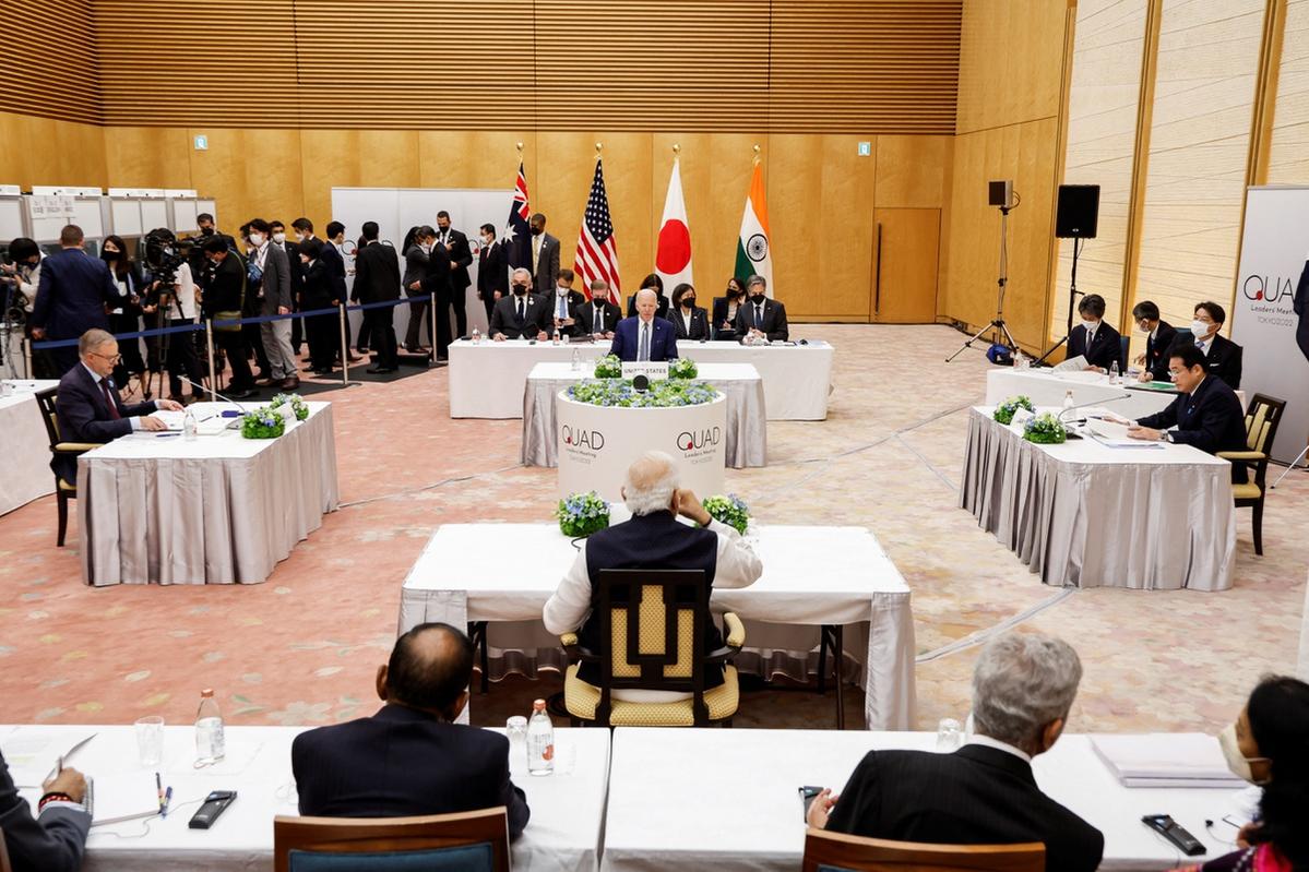 Từ trái sang, Thủ tướng Australia Anthony Albanese, Tổng thống Mỹ Joe Biden, Thủ tướng Nhật Bản Kishida Fumio, Thủ tướng Ấn Độ Narendra Modi tại hội nghị các nước Bộ Tứ ở Tokyo ngày 24/5. Ảnh: Reuters.