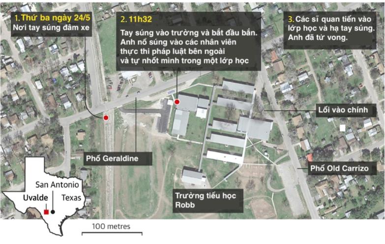 Ở Texas, việc mua súng ở tuổi 18 được luật pháp công nhận. Và theo truyền thông Mỹ, nghi phạm trong vụ tấn công hôm 24/5 đă mua khẩu súng trường bán tự động kiểu AR-15 ngay dịp sinh nhật tuổi 18.