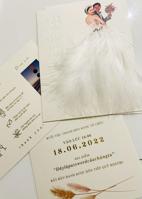 Minh Hằng gửi thiệp cưới cho bạn bè nhưng không ghi nơi tổ chức, chỉ nhắn riêng cho từng người để đảm bảo riêng tư.