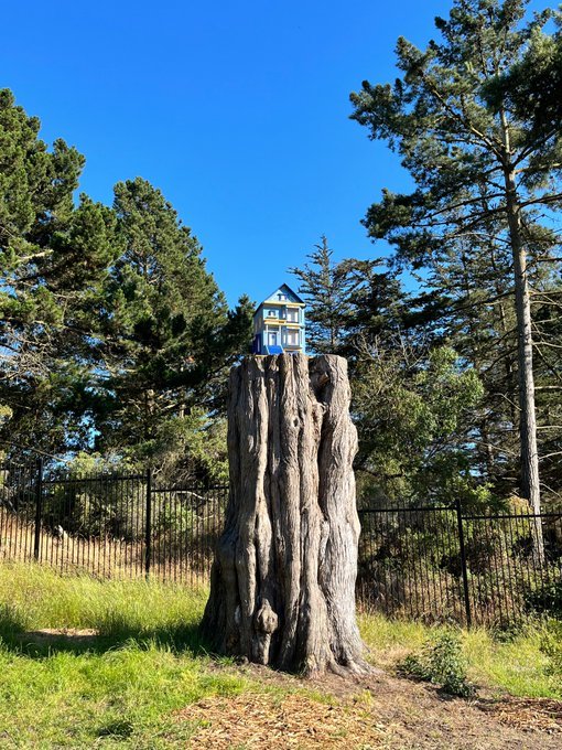 Ngôi nhà nhỏ theo phong cách thời Victoria bất ngờ xuất hiện trên gốc cây chết bên trong công viên Cổng Vàng ở San Francisco, Mỹ. Ngôi nhà mới thu hút sự chú ý của khách tham quan đến công viên.