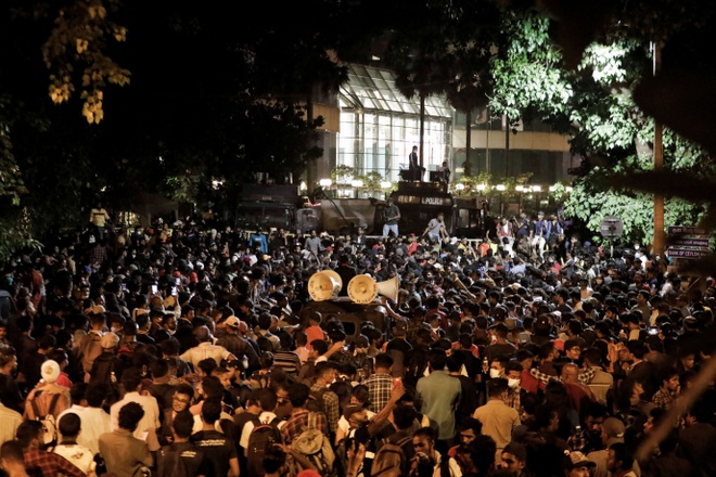 Người biểu tình tụ tập gần dinh thự Tổng thống Gotabaya Rajapaksa yêu cầu ông từ chức ở Colombo hôm 8/7. Ảnh: Reuters.