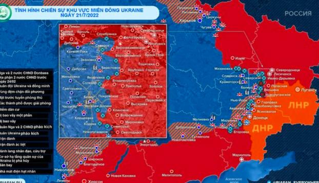 Ngày 21/7, quân đội Nga, dân quân Donbass tiếp tục giao chiến với quân đội Ukraine trên chiến tuyến Seversk – Soledar – Bakhmut. Nga tăng cường đánh phá tiêu hao sinh lực, phương tiện của quân đội Ukraine.