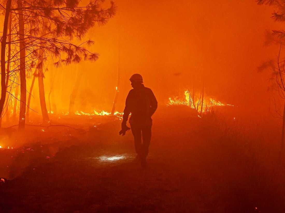 Bức ảnh này được cung cấp bởi đội cứu hỏa vùng Gironde (SDIS 33) cho thấy các nhân viên cứu hỏa đang chiến đấu với đám cháy rừng gần Landiras, tây nam nước Pháp, vào ngày 17 tháng 7 năm 2022. Ảnh: AP