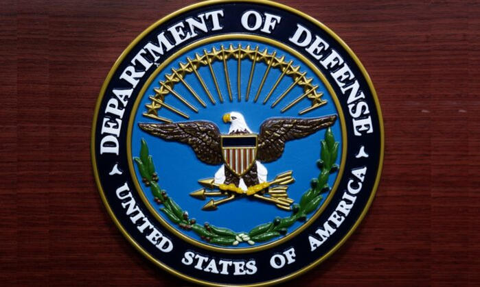 Con dấu của Bộ Quốc pḥng Hoa Kỳ trong pḥng họp báo của giới truyền thông tại Lầu Năm Góc ở Washington, DC, hôm 12/12/2013. (Ảnh: Paul J. Richards/AFP/Getty Images)