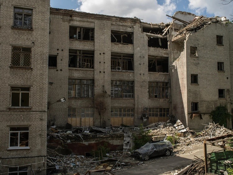 Tòa nhà bị trúng tên lửa ở Kiev, nơi Sumliennyi tìm thấy mảnh tên lửa hành trình. Ảnh: NY Times.